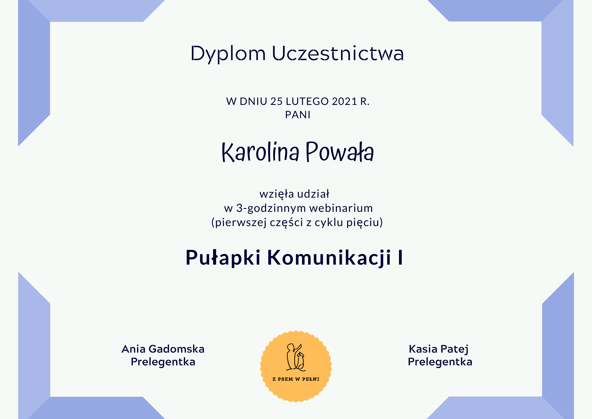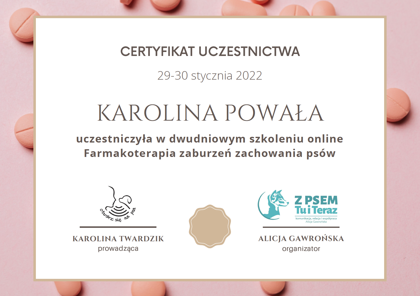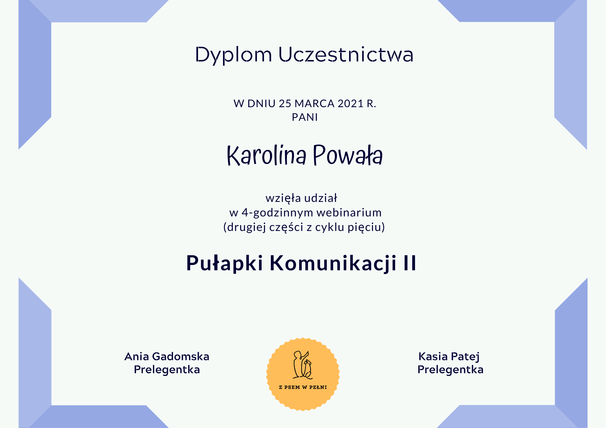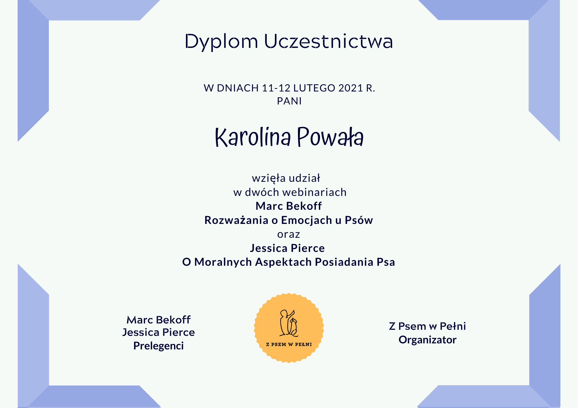 To co jest bliskie mojemu sercu to podejście oraz filozofia Kasi i Ani – “Z Psem w pełni”, u których ukończyłam różne kursy, seminaria oraz webinary ich zagranicznych specjalistów.